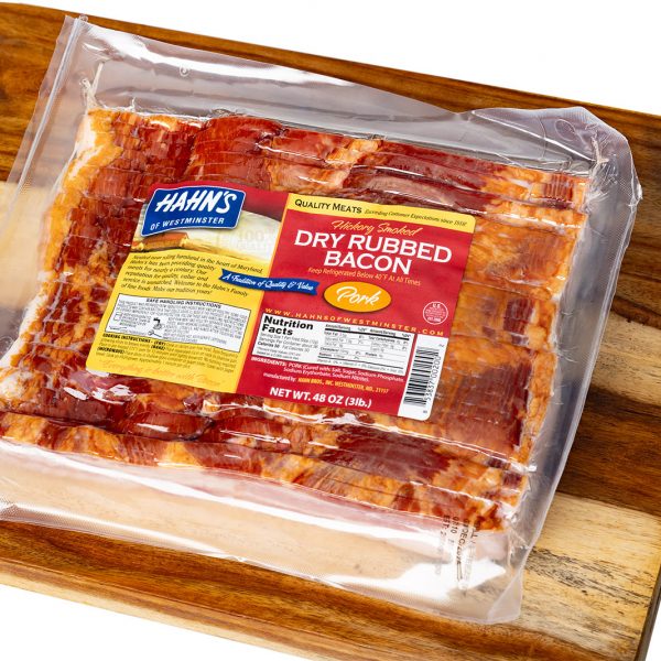 Our SMOKEHOUSE BACON is a full flavored “bacon as it should be” bacon. Using only the finest pork cuts available and working with a select list of ingredients, we craft this richly smoked bacon using 100% natural hardwoods for stunning flavor. Because we are a small artisan crafter, with age old traditions our quality gets the extra attention you deserve. Made from 100% domestic pork we hope you enjoy the quality that is Hahn’s!